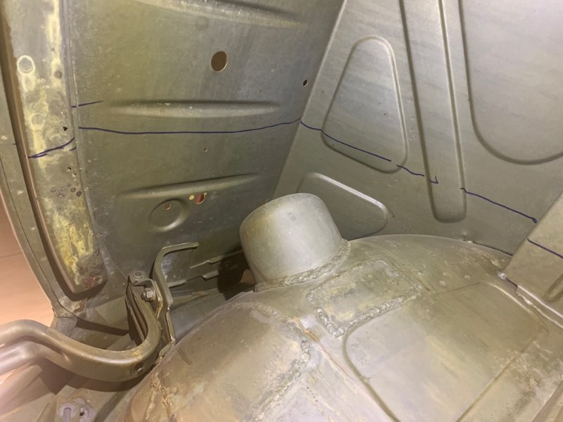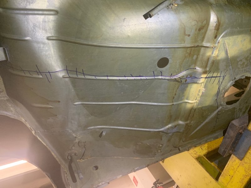 Das hochstehende Blech in der Mitte Rücksitze ist ein 2800 CS Blech, die waren später viel kürzer.