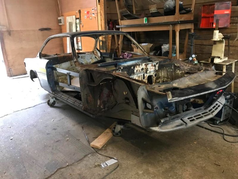 Der Wagen ist fast komplett Zerlegt und es wurden Querstreben zur Verstärkung eingeschweißt. Diese werden sicherlich zur Entnahme der Schweller hilfreich sein. In 2 Wochen werde ich alle dazugehörigen Teile abholen und anschließend eine Bestandsaufnahme durchführen.