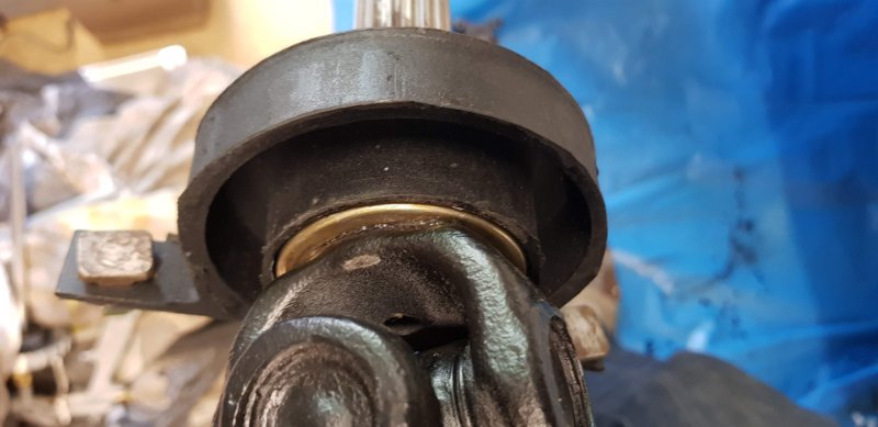 so sah meine Befestigung der Hardyscheibe am Getriebe aus. Ich hätte zumindest eine Unterlegscheibe erwartet, aber hier ist nichts verbaut, auch kein Abstandsring. Gruß