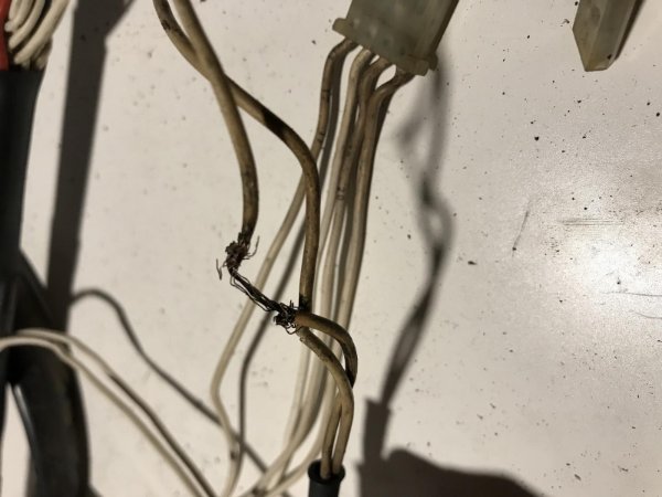 Dann habe ich mich an den Motorkabelbaum gemacht. Er sah schon nicht wirklich gut aus, was die Steckerisolierungen usw. betrifft. Dennoch dachte mir es ist mit der Erneuerung der Ummantelung getan, schließlich habe ich den Motor vor Ausbau mal laufen lassen und er lief gar nicht so schlecht. Einige Kabel waren dann aber doch überraschend schlecht, verhärtet oder auch einfach fast ab: