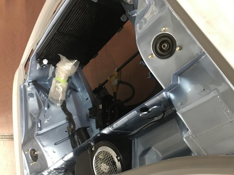 Abschließend habe ich mir noch ein paar Tage gegönnt und die Achsen eingebaut. Die Karosserie rollt nun zum ersten Mal seit April 2018 wieder auf eigenen Rädern. Den Heizungskasten habe ich noch eingebaut, die Lenkung, Kühler und den Kabelbaum.