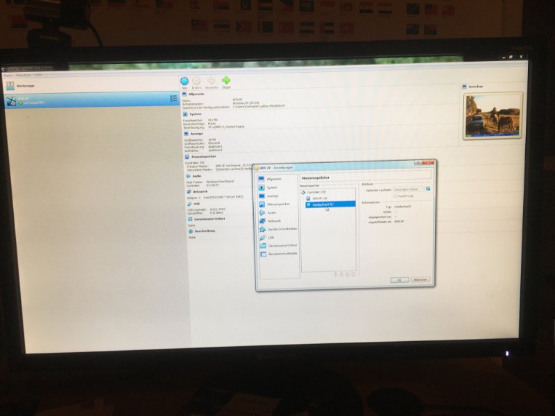 (Massenspeicher: Hostlaufwerk "D" -> passthrough aktivieren; Boot-Device bei Installation "DVD! wählen - später im Betrieb "Platte"