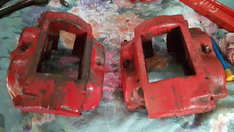 Vermutlich ist einer vom E9, der andere vom E24. Der E24 hat dickere Beläge. Erkennbar ist der E24 Satttel an den Verbindungsschrauben der Sattelhälften, die sind beim E24 ohne Muttern sondern direkt im Gehäuse eingeschraubt.