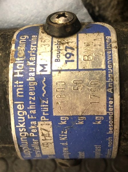 Das Auto wurde die vergangenen Jahre nur mit meinem 07er Kennzeichen bewegt, ich möcht jetzt aber ein Gutachten für ein H-Kennzeichen machen. Eigenartigerweise ist aber im Brief keine AHK eingetragen. Was mich ebenso wundert ist, das die abgebildete Plakete nur auf dem abnehmbaren Haken angebracht ist. An der fest installierten Aufnahme am Wagen gibt es keine Nummer oder Plakette. Wobei ich sagen muss das die üblicherweise vorhandene Halteplatte für die Steckdose wohl entfernt wurde und diese direkt am Heckblech des Wagens angebracht ist.