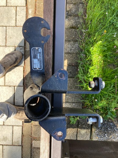 was mir daran am meisten Sorge bereiten würde, ist dass da jemand Löcher in den Kupplungshaken gebohrt hat, um das Schildchen anzuschrauben, was den Haken zu Edelschrott macht.