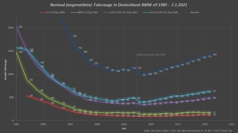 PS: Finde die Bestandszahlen für ein durchschnittlich 50 Jahre altes Auto ziemlich gut. Ich bin ziemlich sicher, dass es beim E3 nicht so rosig aussieht. Teure Coupes waren halt schon immer eine langfristige Versuchung wert. ;-)