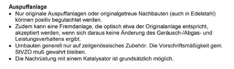 Hier der relevante Auszug daraus: Ich deute das so, das wenn es keine original Auspuffanlage mehr gibt, man auch Edelstahl Nachbauten verbauen darf.
