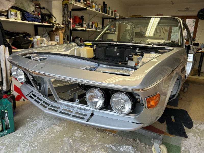Liebe e9 Freunde, nachdem ich schon fast 2 Jahren im Besitz eines 3.0 cs bin und nun schon beim Zusammenbau nach einer Komplettrestauration bin, möchte ich bei euch erst mal herzlichst für eure Beiträge bedanken. Die Beiträge waren und sind für mich eine große Hilfe. Obwohl ich viele Bilder beim Zerlegen gemacht hatte, fehlten doch machte Details. Dank diesem Forum und eurer Hilfe, bin ich aber immer weitergekommen, daher möchte ich auch einen kleinen Beitrag dazu leisten, meine Erfahrungen und Hilfe für Gleichgesinnte weiterzugeben. Zu meiner Person: Bin 64 Jahre alt, verheiratet und von Beruf Elektroingenieur. Thema Autos hat mich schon seit meiner Jugend begeistert und somit haben sich folgende Autos bei mir angesammelt: Sunbeam Alpine S2, Porsche 356, Porsche 997 und vor 2 Jahren hatte ich noch einen Jaguar S-Type Baujahr 1964. Nachdem ich den Jaguar verkauft hatte, hat mir ein Sunbeam Freund von seiner Restauration eines e9 berichtet. Der e 9 Virus war bei mir schon da, aber diesem Abend bracht er völlig aus. Also ging ich auf die Suche eines E9s. Nach Monaten der Suche und Internet Recherchen verkaufte mir derselbe Freund einen restaurierbaren e9. Ich habe das Fahrzeug innerhalb kurzer Zeit komplett zerlegt und zum Spengler gebracht. Zwischenzeitlich habe ich alle Teile wie Achsen, Antriebsstrang, Lichteinheit, Kabelbau usw. gründlich überholt, dabei war der Winkelschleifer mein bester Freund!! Seit Anfang Dez. 2024 ist der e9 vom Lackierer zurück und ich baue alles wieder zusammen. Ich belasse es nun mit dem Texten und stelle ein paar Bilder ein, für mich sagen Bilder eh viel mehr.
