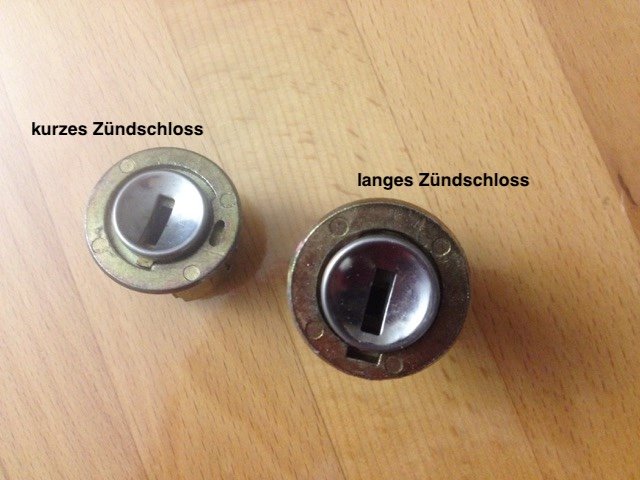 Beim Zündschloss gibt es ebenfalls 2 unterschiedliche Ausführungen, auch hier sollte original die im Bild rechte Ausführung verbaut sein. Dementsprechend passt dann auch nur die Abdeckung der neueren Ausführung.