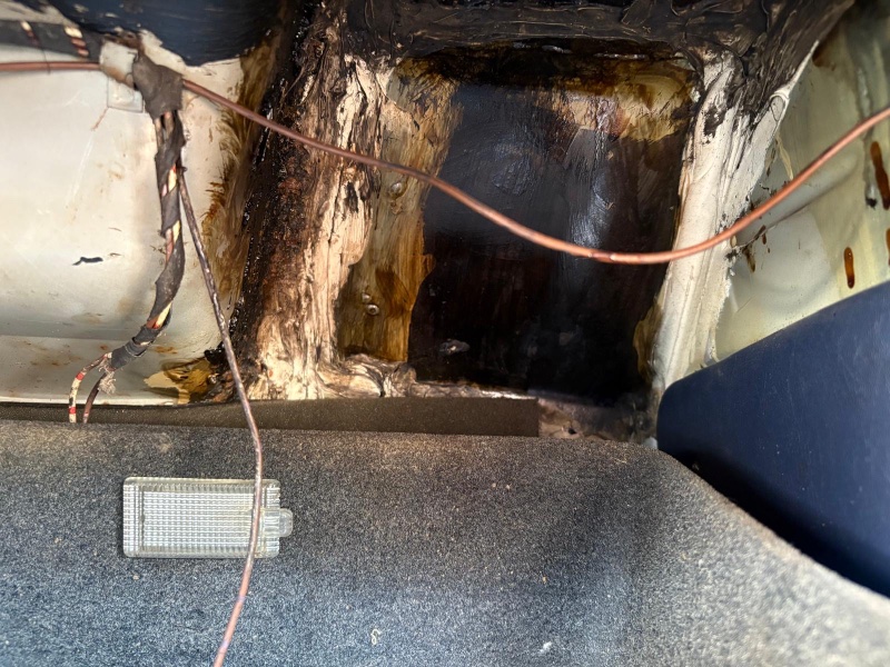 2. Die üblichen Roststellen an der Motorraumwand und hinter der Rückbank sind meines Erachtens ganz komisch behandelt worden, siehe Fotos anbei. Wie schätzt ihr das ein? Für mich sieht das wie Bitumenpampe aus? In meinen Augen müsste auch das gemacht werden. Habt ihr Erfahrungen, wie dem Rost nachhaltig an diesen Stellen entgegengewirkt werden kann? Ist das automatisch mit einem Kompletten Zerlegen verbunden?