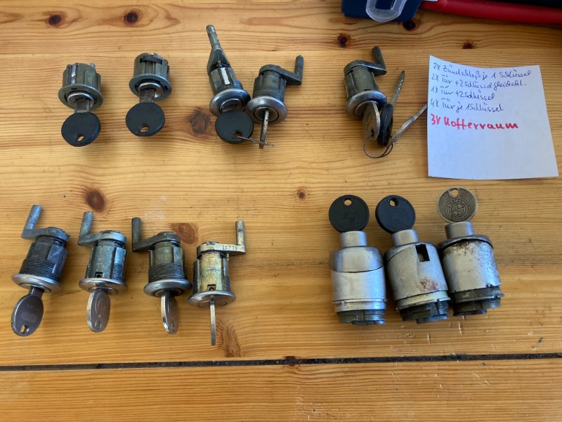 Wer eine Gleichschließung für alle Schlösser, teils mit Handschuhfach und auch mit dem seltenen Tankschloss haben möchte soll sich bitte per Email melden. Ich habe einige Sätze gebaut, in unterschiedlicher Konfiguration von 500 für 4 Schlösser und kurzem Zündschloss bis 1000 Euro für 6 Schlösser und langem Zündschloss.......