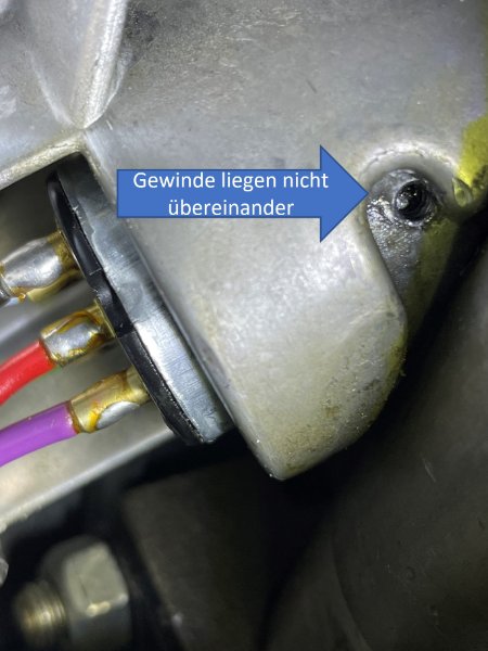 Am ZAS ist auch erkennbar, dass die Schraube nicht in das Gewinde greift, sondern etwas daneben: