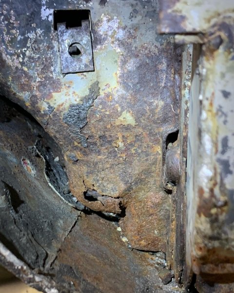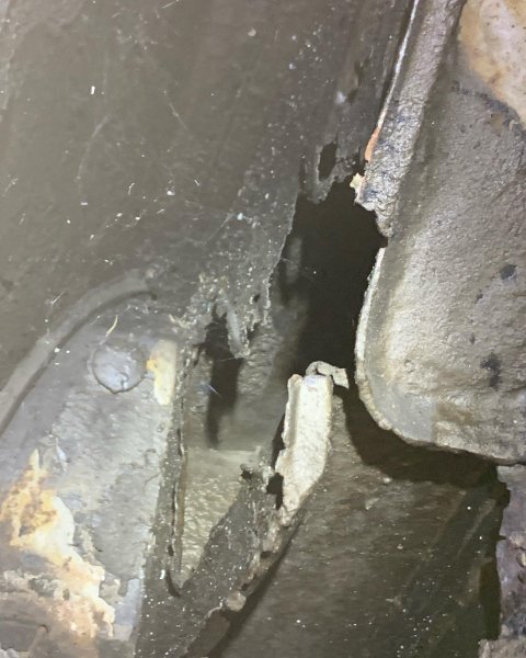 Bisher sind schon 700kg Trockeneis nötig gewesen und es wird bestimmt nochmal die Hälfte davon folgen, um die Reste wegzumachen, aber ich werde das ein- oder andere wahrscheinlich einfach direkt so mit frisch galvanisierten schrauben wieder einbauen können. HA-Träger sieht aus wie neu, der rechte Querlenker kam auch mal neu (orangener Kleber unter dem Wachs) VA werde ich KTL machen müssen, da offensichtlich mal Bremsflüssigkeit ausgelaufen ist. Kardanwelle kam 2005 neu, die ist noch gut und muss nur gekürzt werden. Weitere Überraschungen sind ein kleines bisschen Sieb in der Reserveradmulde und die Falz von der Haubendichtung vorne, da sind 2 -3 cm weggegammelt.