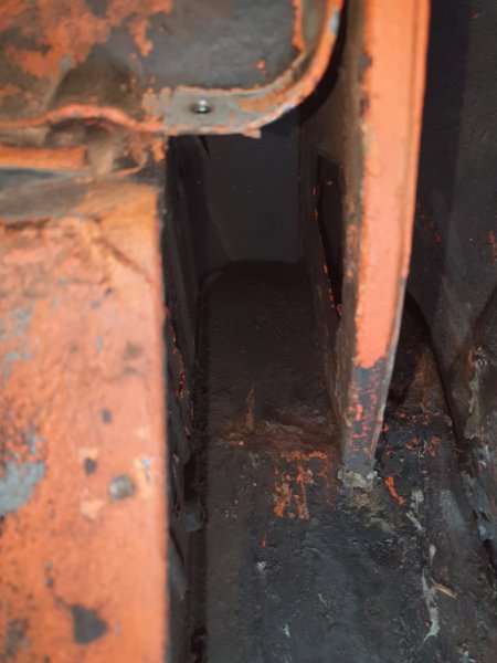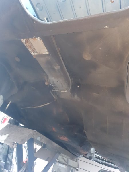 Bodenblech v.l. ist ist 7x7 cm durch, hier wurde mal die Hebebühne falsch angesetzt, das Versteifungsblech war verbogen und dadurch Steine zw. den blechen.