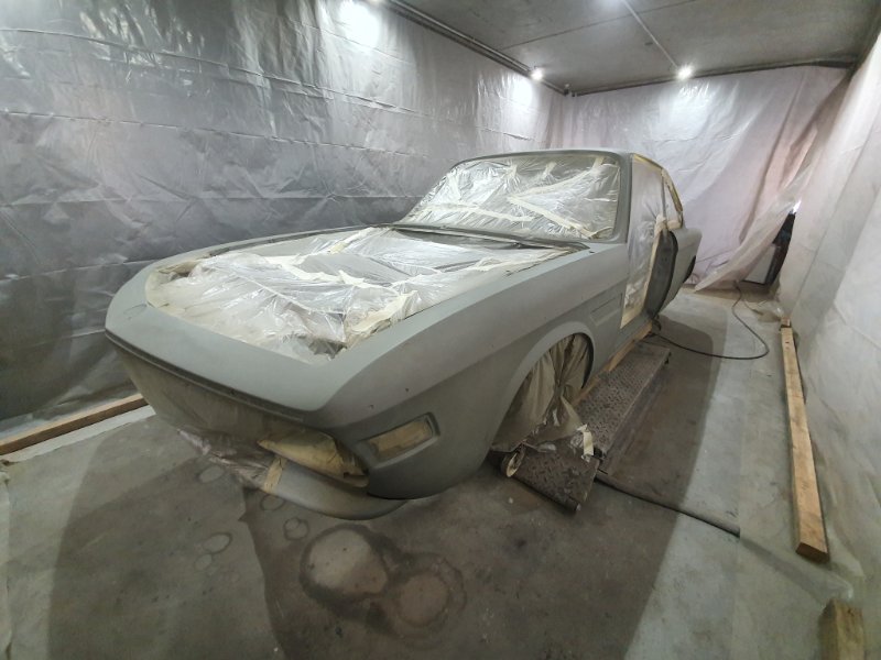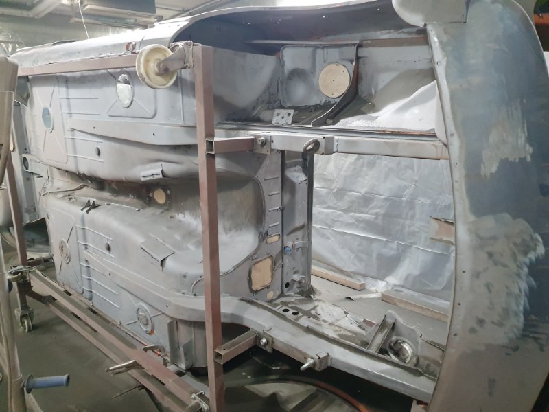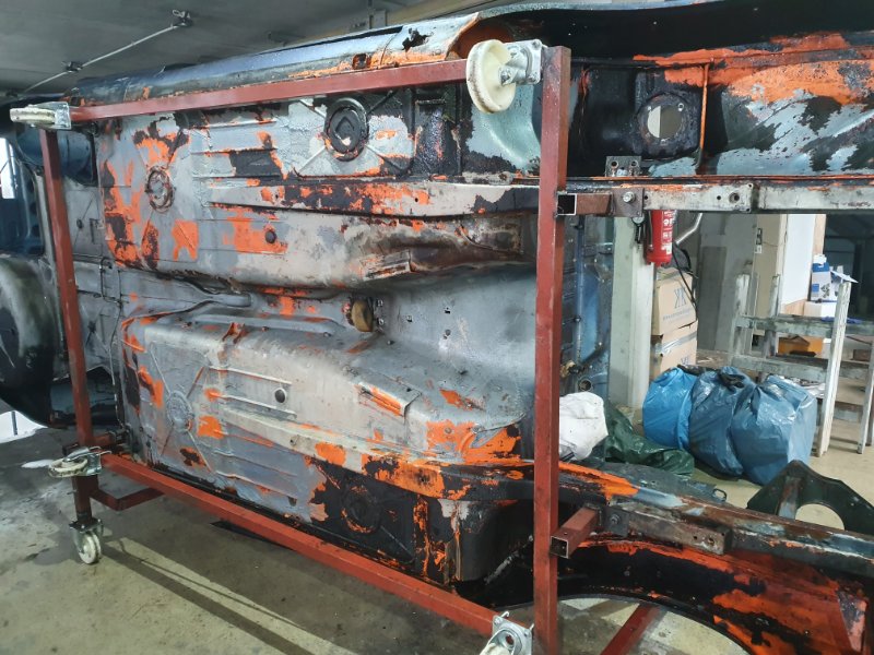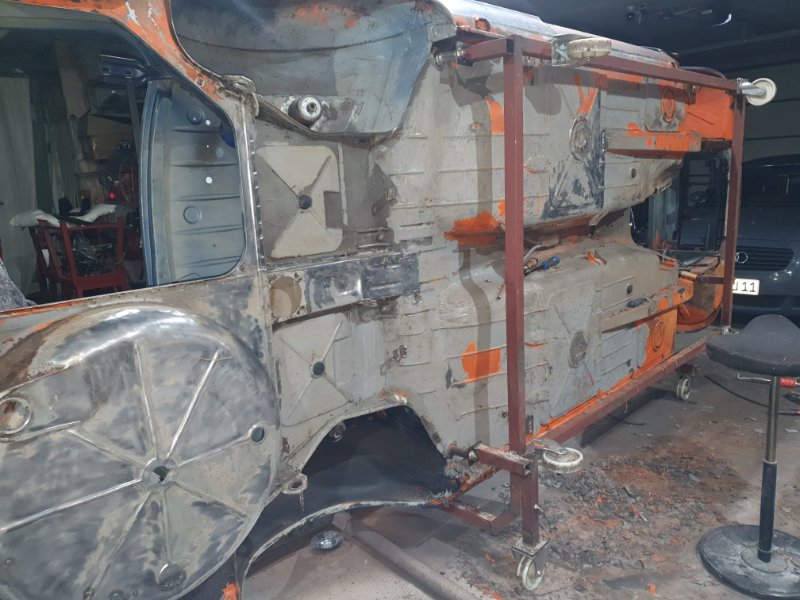 Allerdings ist das entfernen der 40 Jahre alten Orangen Grundierung mit der der Wagen damals geschützt wurde, ein Alptraum und erschwert die Arbeit.